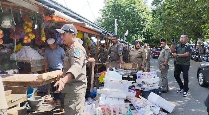 “Kami lakukan penertiban hari ini untuk lapak buah, karena lapaknya sudah melebihi hingga menutupi saluran air atau got. Ini kami tertibkan juga untuk mengurangi kemacetan di area pasar dan kenyamanan bagi pengguna jalan”, ujarnya.