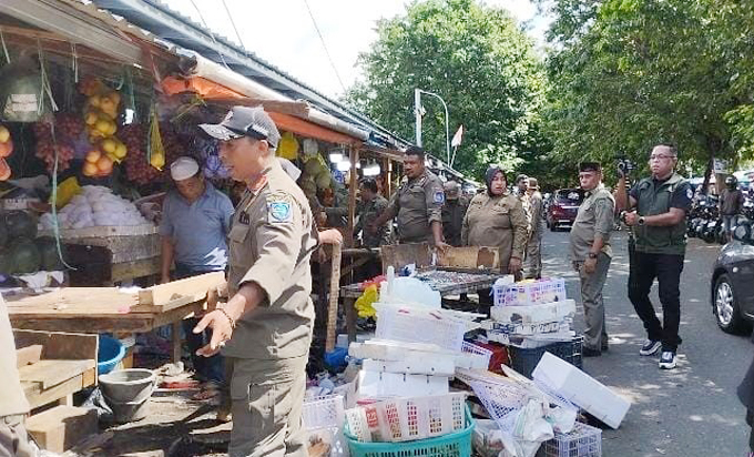 “Kami lakukan penertiban hari ini untuk lapak buah, karena lapaknya sudah melebihi hingga menutupi saluran air atau got. Ini kami tertibkan juga untuk mengurangi kemacetan di area pasar dan kenyamanan bagi pengguna jalan”, ujarnya.