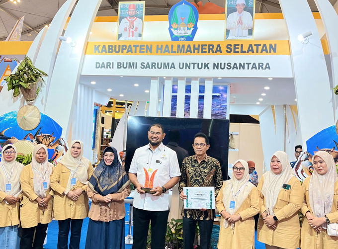 Atas kerjasamanya yang baik Pemerintah Kabupaten (Pemkab) Halmahera Selatan akhirnya berhasil meraih penghargaan terbaik pada katagori spesial desain dan dekorasi stand.