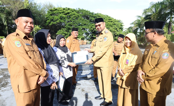 “Hari ini saya atas nama Pemetintah Kabupaten Halmahera Selatan, memberikan penghargaan kepada 3 orang guru yang sudah mengabdi cukup lama, berupa Ibadah Umroh gratis tahun 2026. Ini bentuk dedikasi dan komitmen Pemkab terhadap ASN yang telah banyak mengabdi untuk daerah ini, semoga menjadi penyemangat bagi para guru dan ASN lainnya,”ujar Bupati Bassam Kasuba.