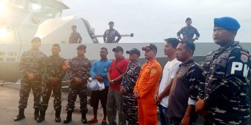 HALSEL, JN – Satu nelayan asal Desa Kawasi Obi, Kabupaten Halmahera Selatan, bernama Hasim Teranggano (41) yang ditemukan selamat setelah mengapung selama 14 jam di perairan Walak Maluku, akhirnya tiba di Bacan Halmahera Selatan, menggunakan Kapal Perang milik TNI Angkatan Laut KRI Panah – 626.