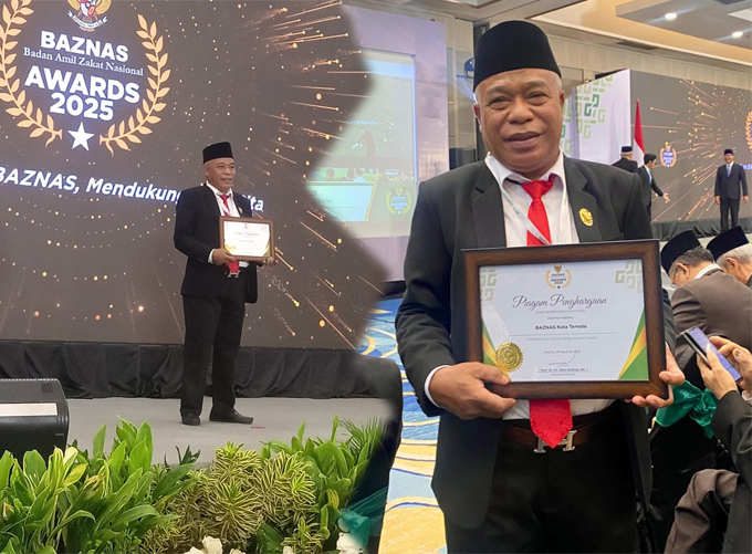 Penyerahan penghargaan dilakukan Ketua Baznas Republik Indonesia Prof. DR. Noor Achmad dan diterima Wakil Ketua Baznas Kota Ternate H. Mu’min Arif dalam acara Baznas Award 2025, Kamis (28/8) di Mercure Convention Center Ancol, Jakarta.