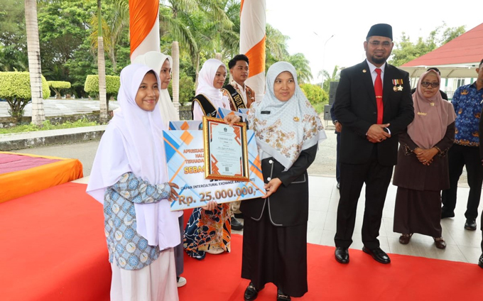Baik Nur S.Syifah dan Maya Dira Suriandi peraih medali emas Olimpiade dan Juara Nasional mendapatkan penghargaan dari Pemkab Halmahera Selatan berupa Piagam Penghargaan serta Uang Pembinaan masing-masing sebesar Rp 25 Juta.