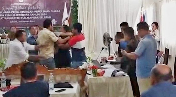 Sementara itu menanggapi masalah ini KPU Halmahera Selatan, menjelaskan bahwa kejadian saling baku hantam diruangan saat pleno itu karena menurutnya ada beberapa Partai Politik (Parpol) diantaranya, Demokrat, PBB, Partai Ummat dan Partai NasDem, pada Pemilu tingkat Provinsi, terjadi pergeseran suara.