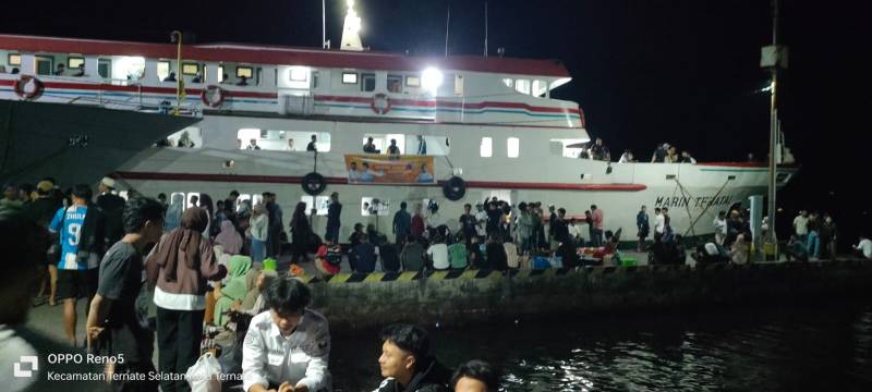TERNATE, JN - Pemudik gratis dari kota Ternate menggunakan kapal laut yang difasilitasi Pemerintah Kabupaten (Pemkab) Halmahera Selatan, Provinsi Maluku…