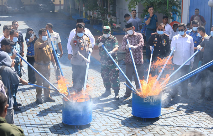 Pemusnahan barang bukti berupa narkotika jenis sabu dan ganja yang berasal dari sejumlah kasus tindak pidana narkotika yang telah melalui proses hukum. Ini menjadi bagian dari kegiatan pertanggungjawaban publik atas kinerja pemberantasan narkotika di Malut.